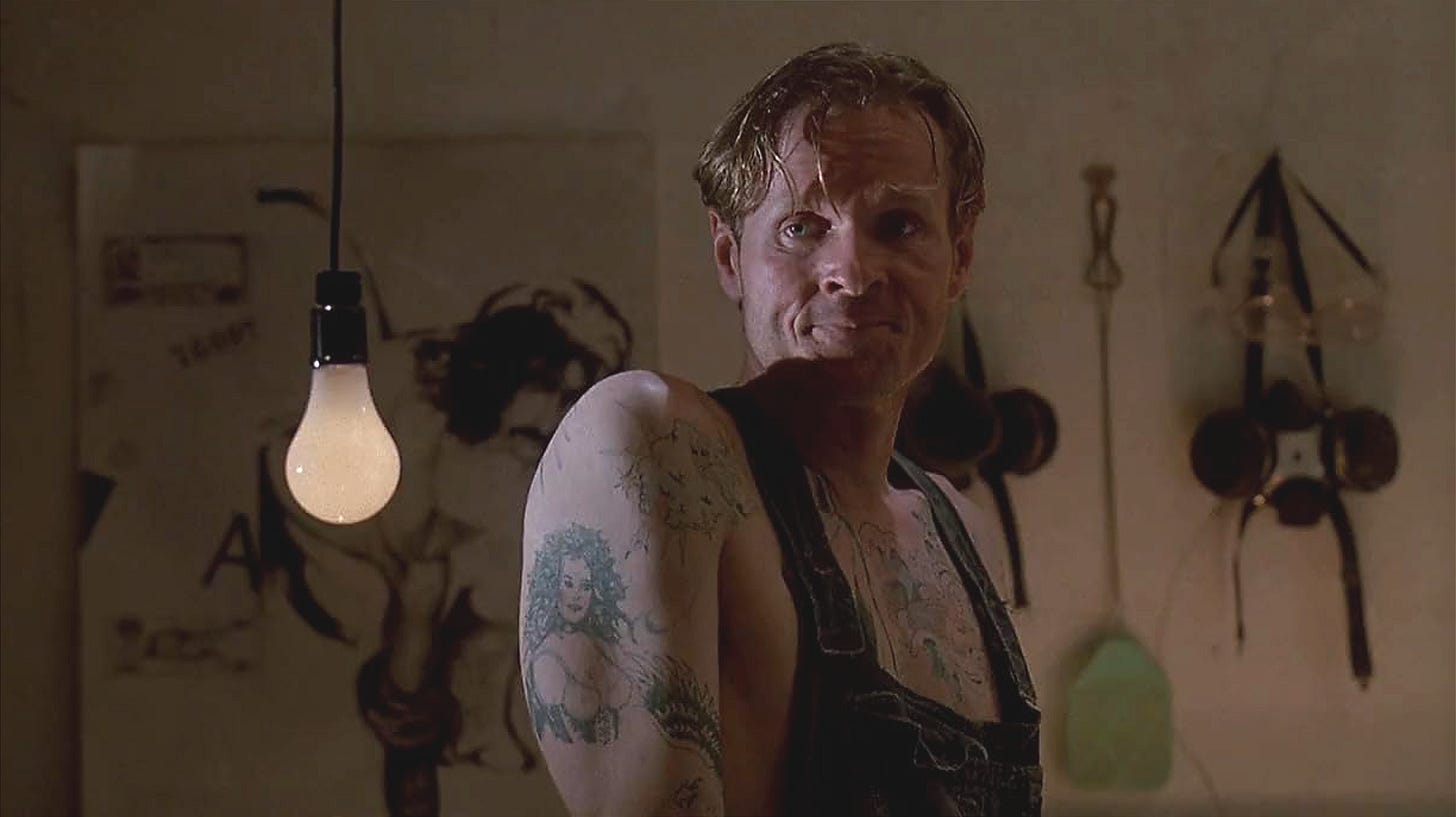 He never so much as raises his voice, but compels two undercover vice cops, played by Jason Patric and Jennifer Jason Leigh, to shoot up heroin to prove they aren’t cops.