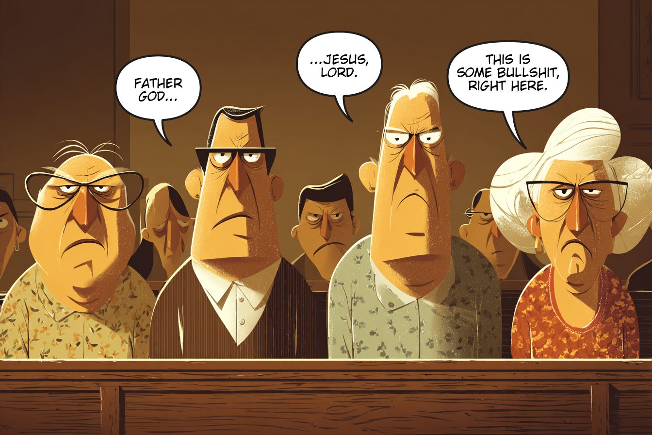 This feeling of aggravation was on nobody’s radar just three hours prior. No, this was purely situational. An unspoken social contract had been broken. I would attend your child’s religious claptrap for no more than an hour, and then I would travel to your house for refreshments, where I would eventually sigh and tell you all about the busy day I had planned, some of which had to be moved around to accommodate this beautiful ceremony. Cards or money would be handed out, and I would be free to go home and fall asleep on the couch in front of the television while a professional pickleball league on the Ocho lulls me into a deep restorative slumber.