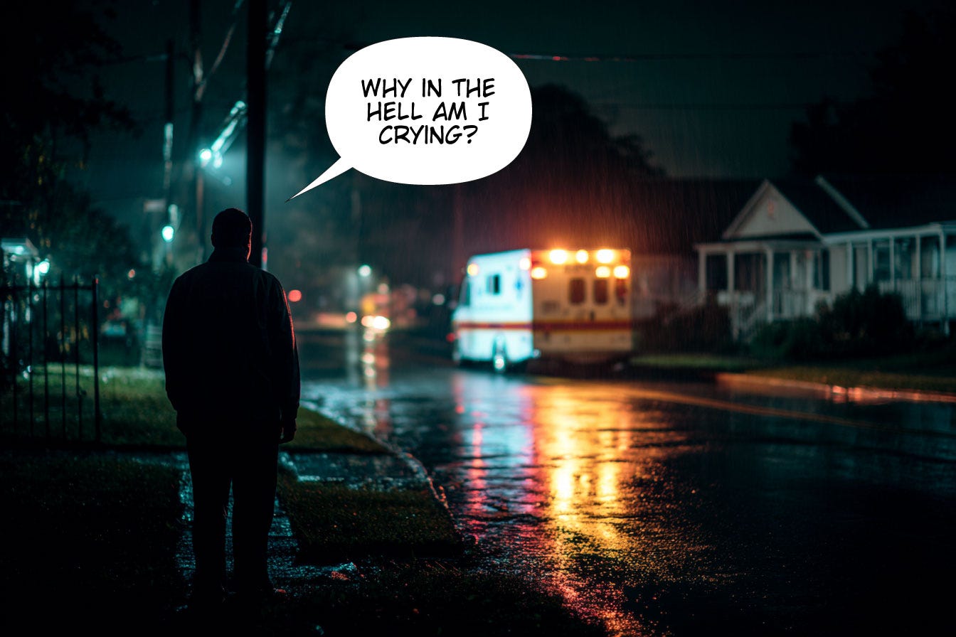 I stood there in the street watching the ambulance drive away, and I sobbed uncontrollably.