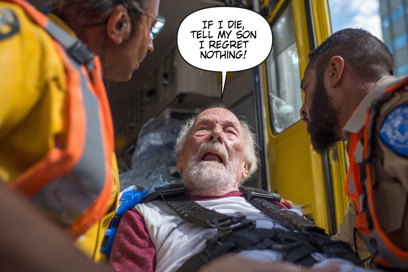 There was only one problem. My paramedics downgraded my father’s disposition to “biohazard mess.” He had soiled himself, and when they told him they needed to get him on a gurney, he informed them he wasn’t done shitting.
