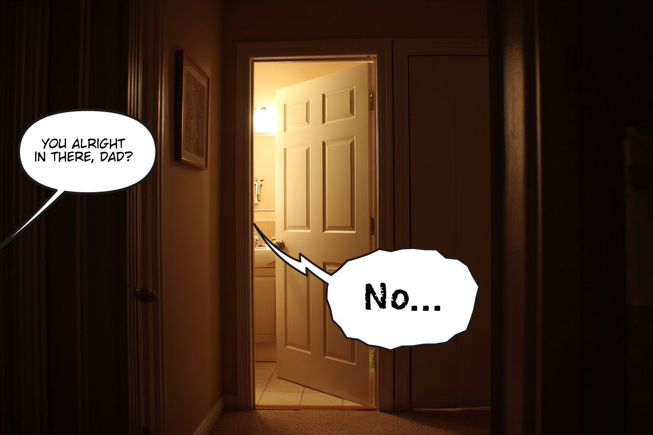 I opened the door to find my father completely naked on the toilet with his head in his hands. He was only semi-conscious.