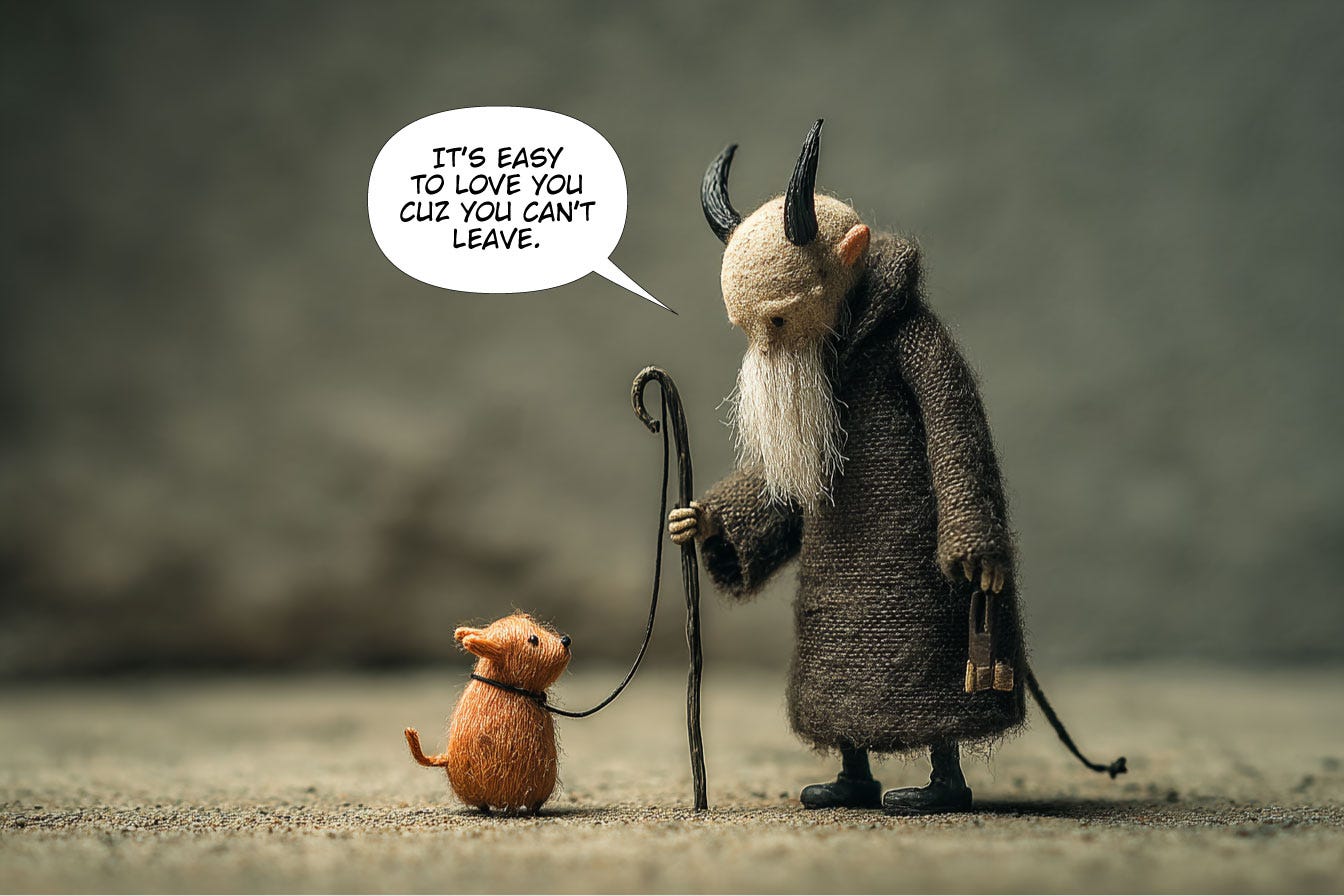 I finally reached the age where the old demon’s deep love for animals, well, it really gets on my tits. That love isn’t new. While we could never have pets in the house growing up, my father seemed to find a new, unconditional love in animals after he left the family home. There were exceptions, of course. We had two budgies as children. They chirped away, night and day, and didn’t seem to bother anyone.